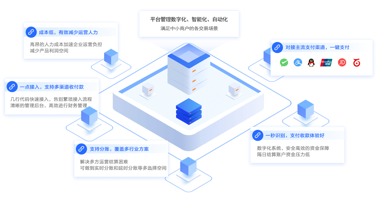 满足中小商户的各交易场景,完美接通主流支付渠道